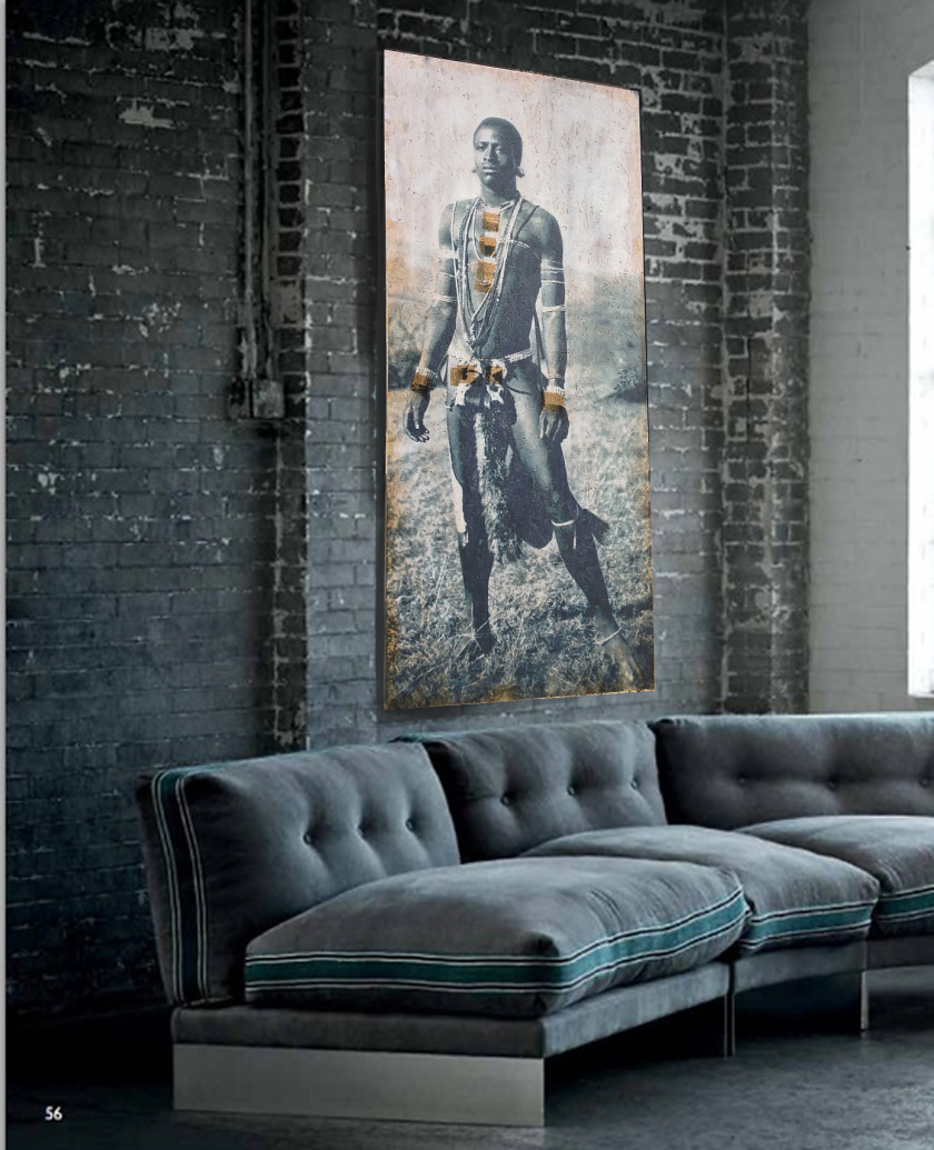 ambiance-afriquePortrait Zoulou. Durban. 160 x 72cm.  Panneau OSB, acrylique, feuilles d’or.  *