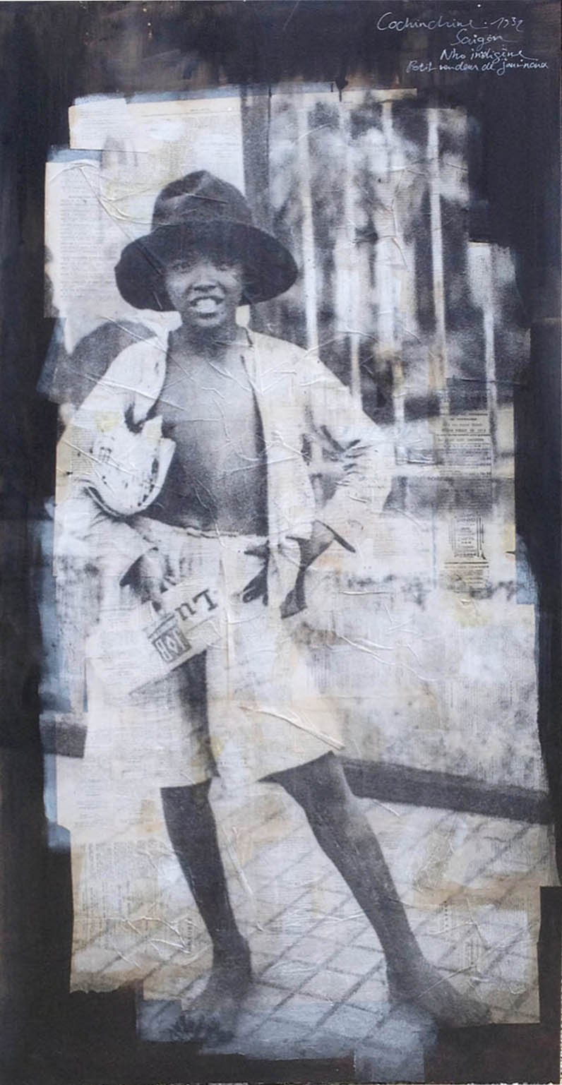 Cochinchina  is a province located in the southern third of Vietnam whose principal city is Saigon (in French Saïgon).   It was a French colony from 1862 to 1954  separated from the other two parts of the territory of Vietnam. She was reinstated to the rest of the country only in 1949.  A little boy walks in the street  to sell the French or Vietnamese daily newspapers.