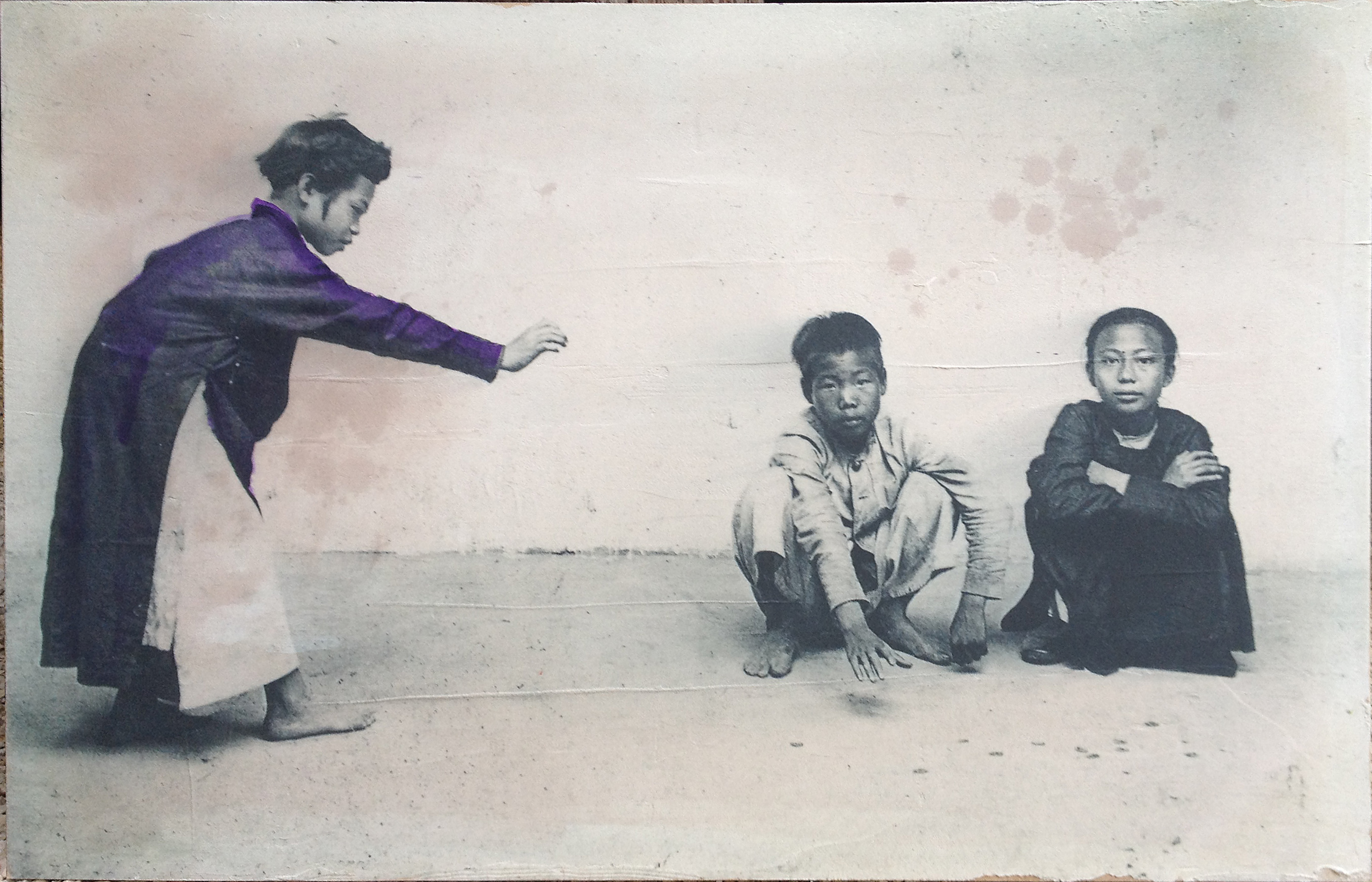 Le jeu de la sapèque (appelé xoùc ñóa) était très populaire au Tonkin.  Il s’agit de parier sur la face de la pièce qui apparaîtra après avoir été secouée sous un bol par le croupier ou lancée par terre comme s’apprête à faire les enfants.